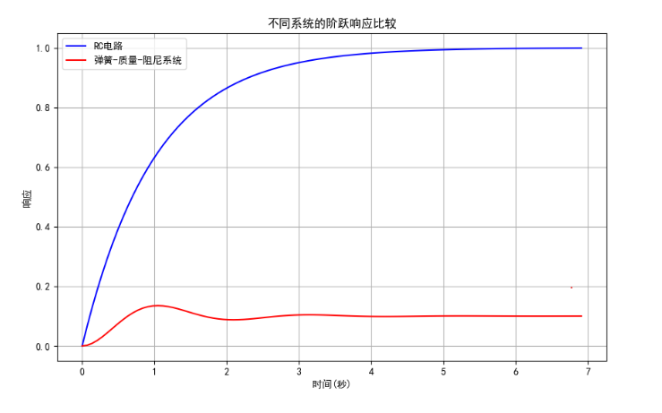 上述代码模拟了弹簧 - 质量 - 阻尼系统在外力作用下的响应。通过求解二阶微分方程,得到了系统的位置和速度随时间的变化曲线。从结果可以看出,系统最终会达到一个稳态值,这个值取决于外力大小和弹簧刚度。