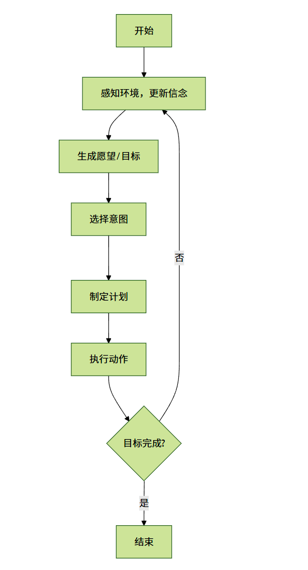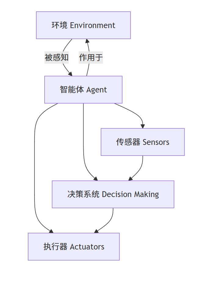 智能体是处于某个环境中的实体,它可以通过传感器感知环境,通过执行器作用于环境,并能根据自身的目标自主决策。