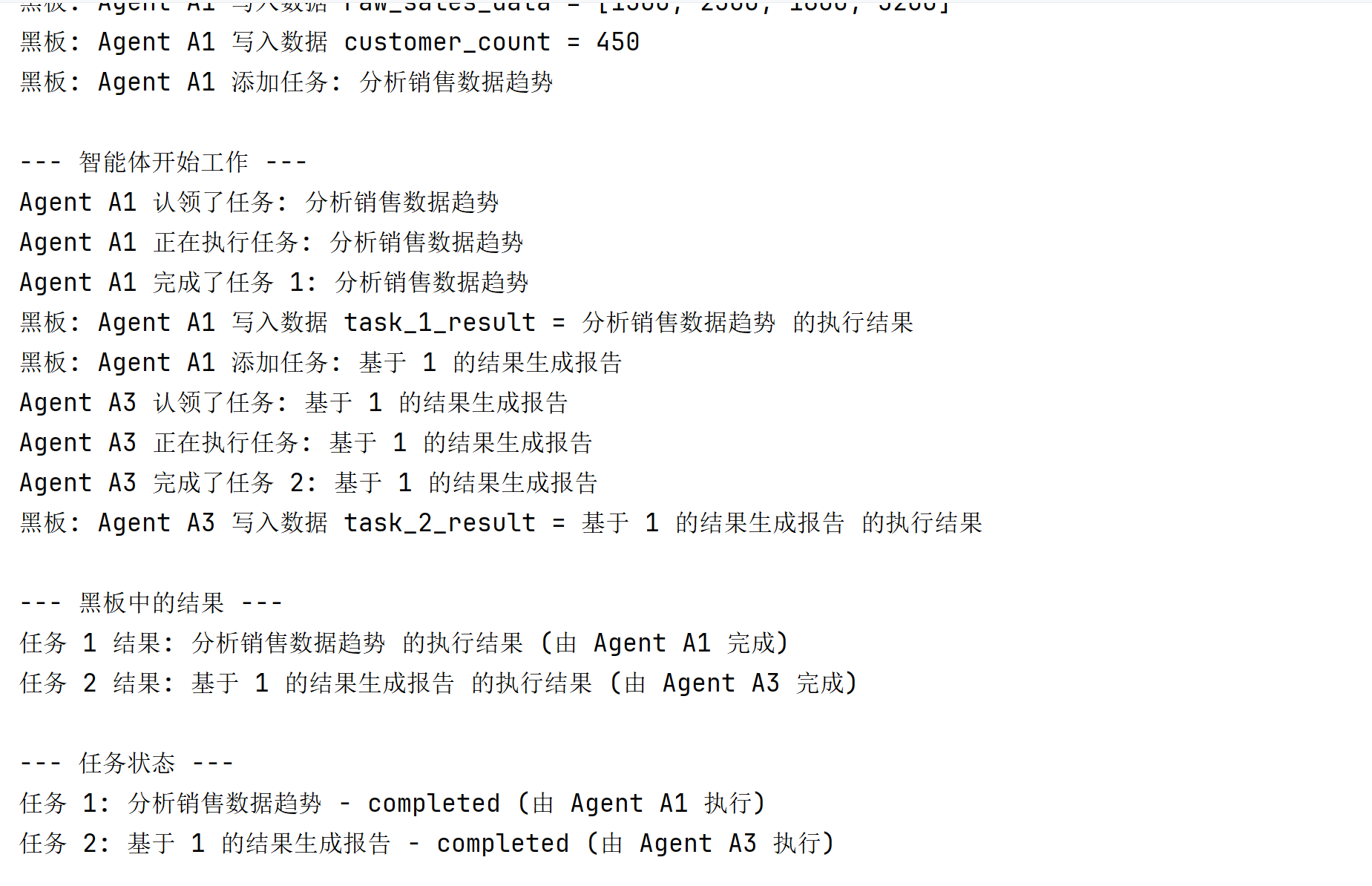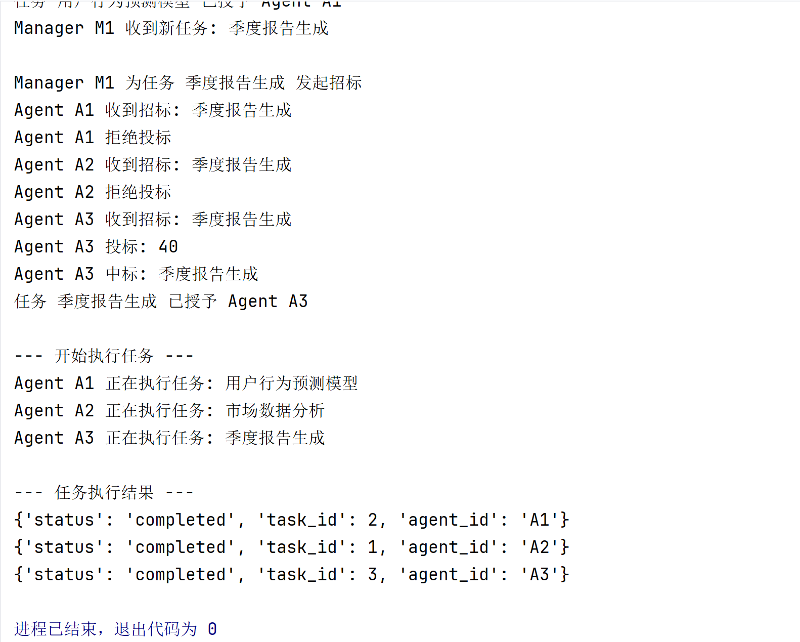 print(f"协议执行成功:Agent {self.agent_id} 用 {proposal['offer']} 交换到 {proposal['request']}")