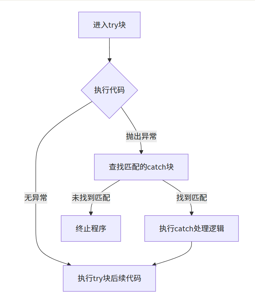 } 当异常被抛出时,程序会退出当前try块,并自动销毁在try块中创建的所有局部对象,这个过程称为栈展开(Stack Unwinding)。这保证了资源不会因为异常而泄露。