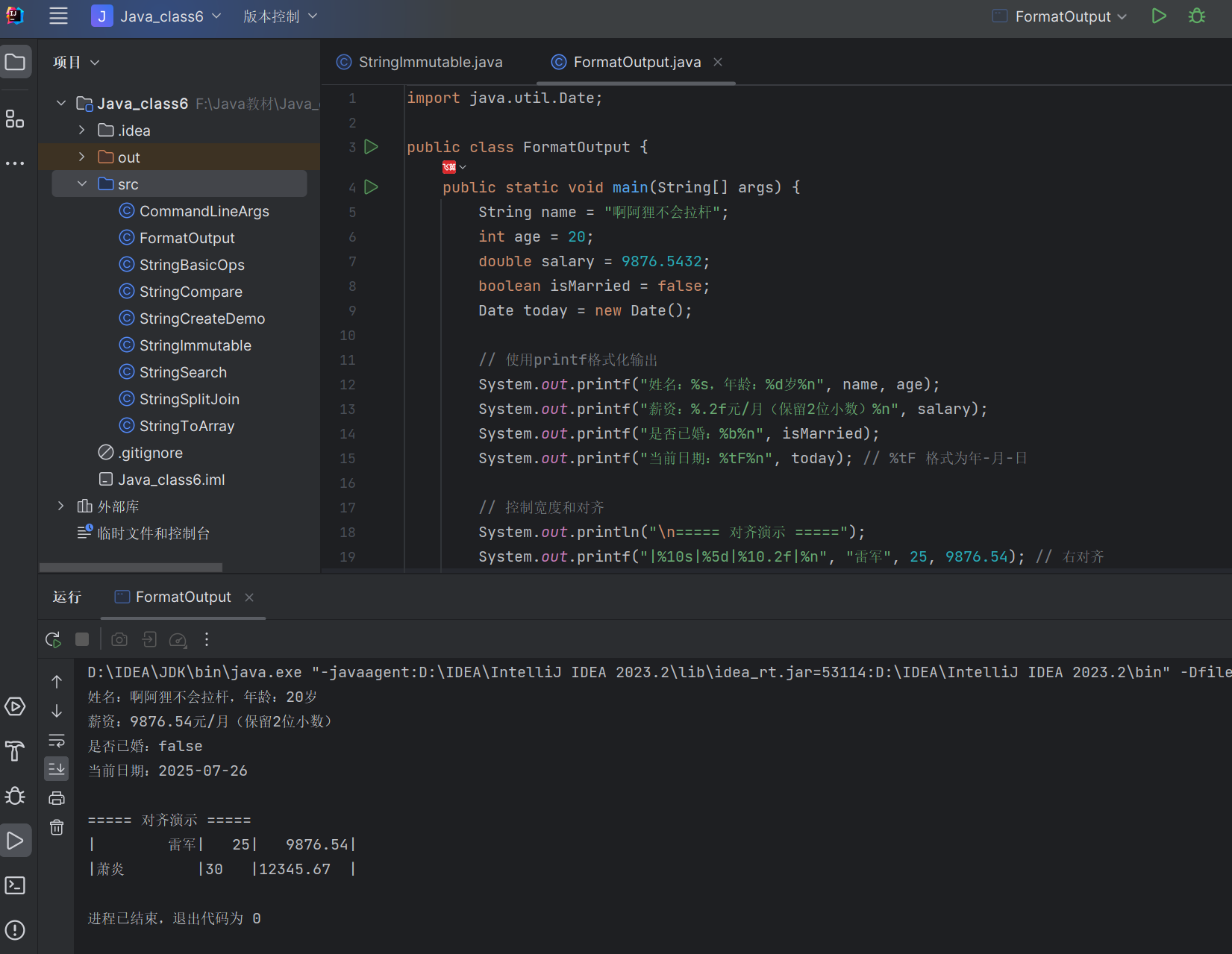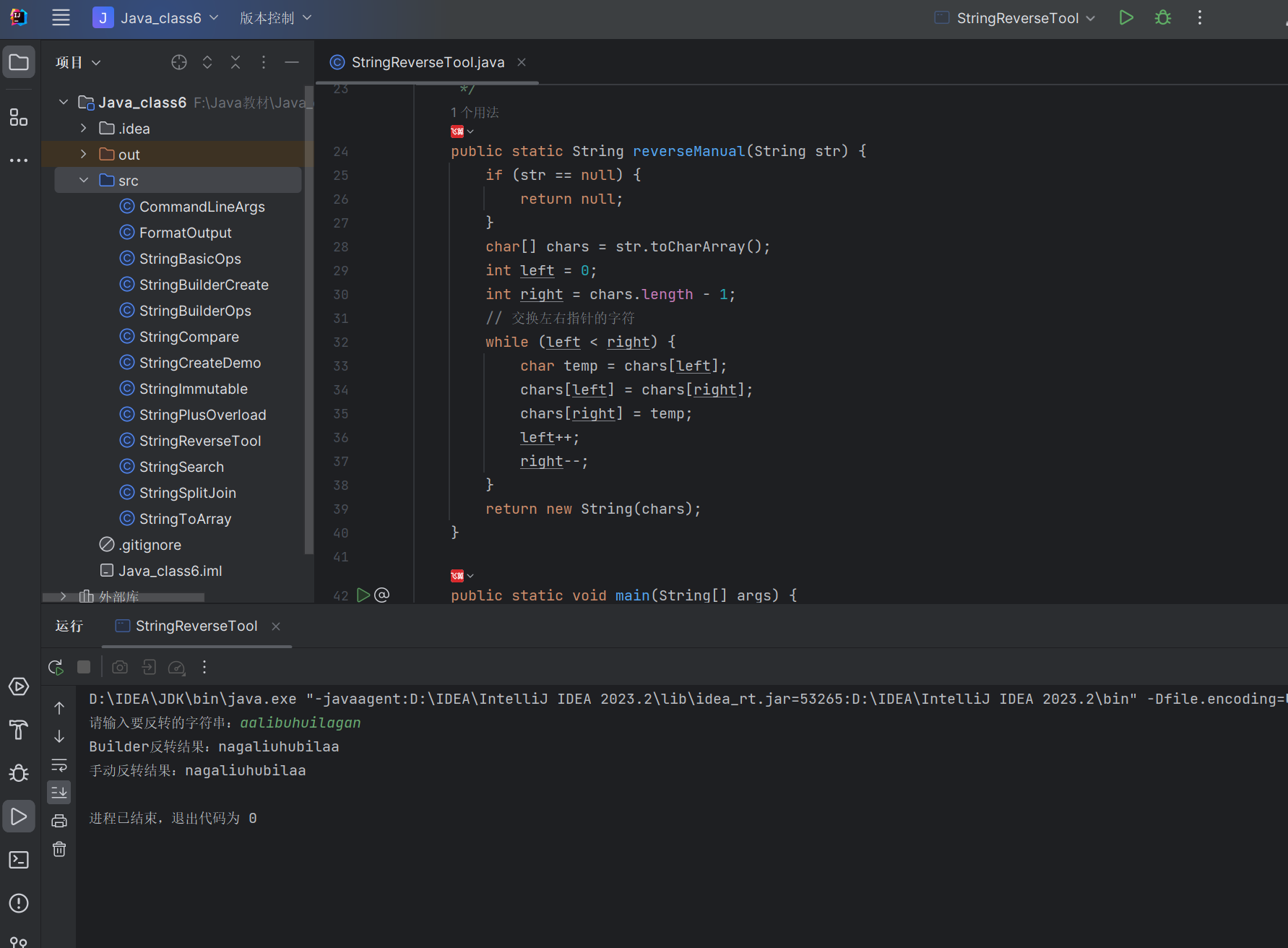 printf方法支持多种格式占位符,便于格式化展示数据。StringBuilder:非线程安全,效率高,适合单线程。StringBuffer:线程安全,效率较低,适合多线程。StringBuilder,避免用String的+运算符。实现一个工具类,提供字符串反转功能,支持多种输入方式。