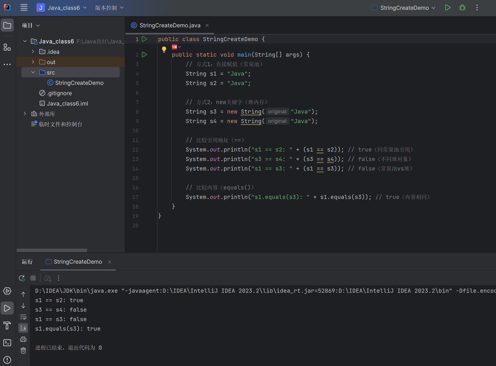 System.out.println("s1.equals(s3): " + s1.equals(s3)); // true(内容相同)