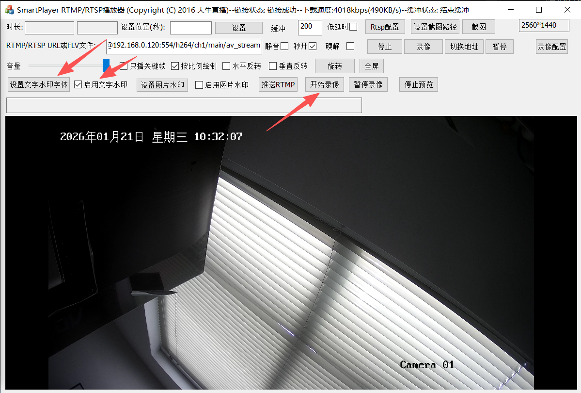 // 2. 设置回调格式为 RGB32,方便后续GDI+处理(虽然I420效率更高,但RGB处理水印更方便)