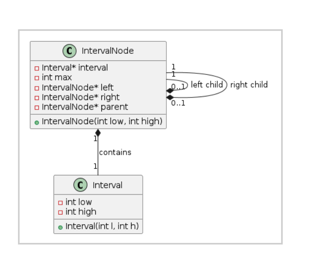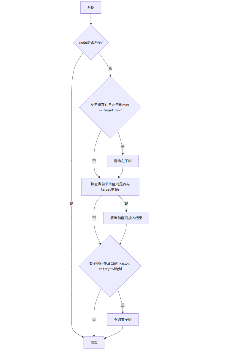 void queryOverlapping(IntervalNode *node, Interval *target, vector<Interval*>& result);