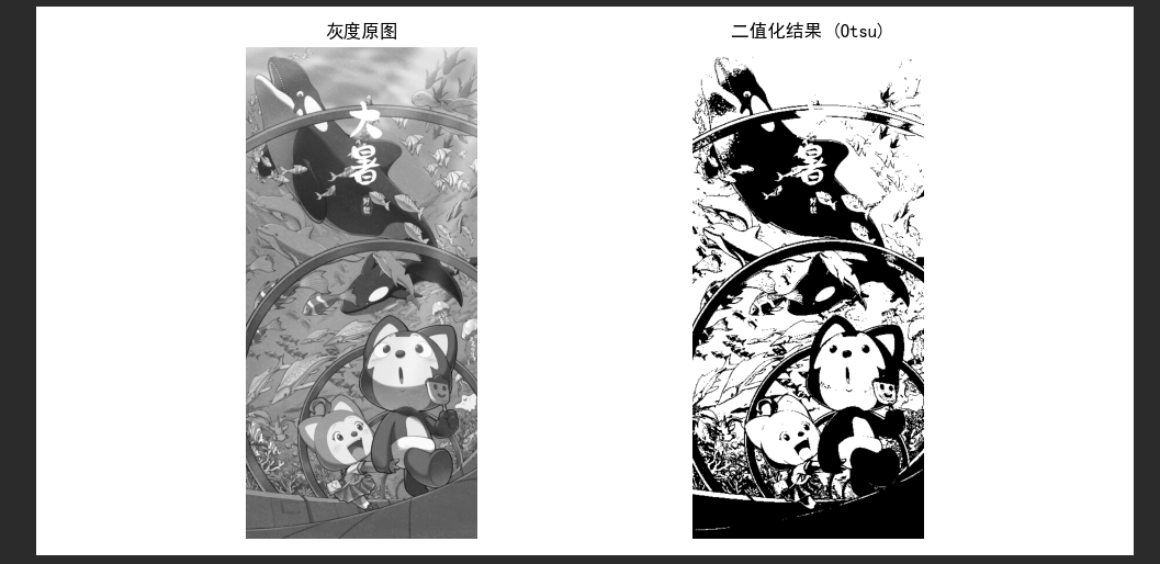 # 2. 执行二值化 (使用Otsu's方法自动寻找最优阈值)