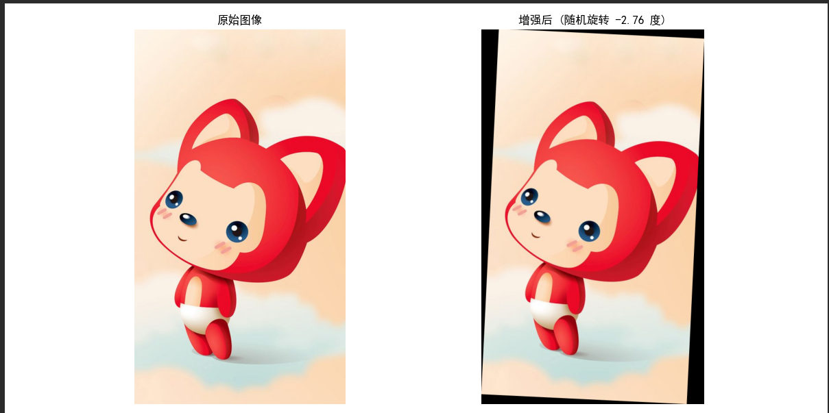plt.title(f"增强后 (随机旋转 {angle:.2f} 度)")