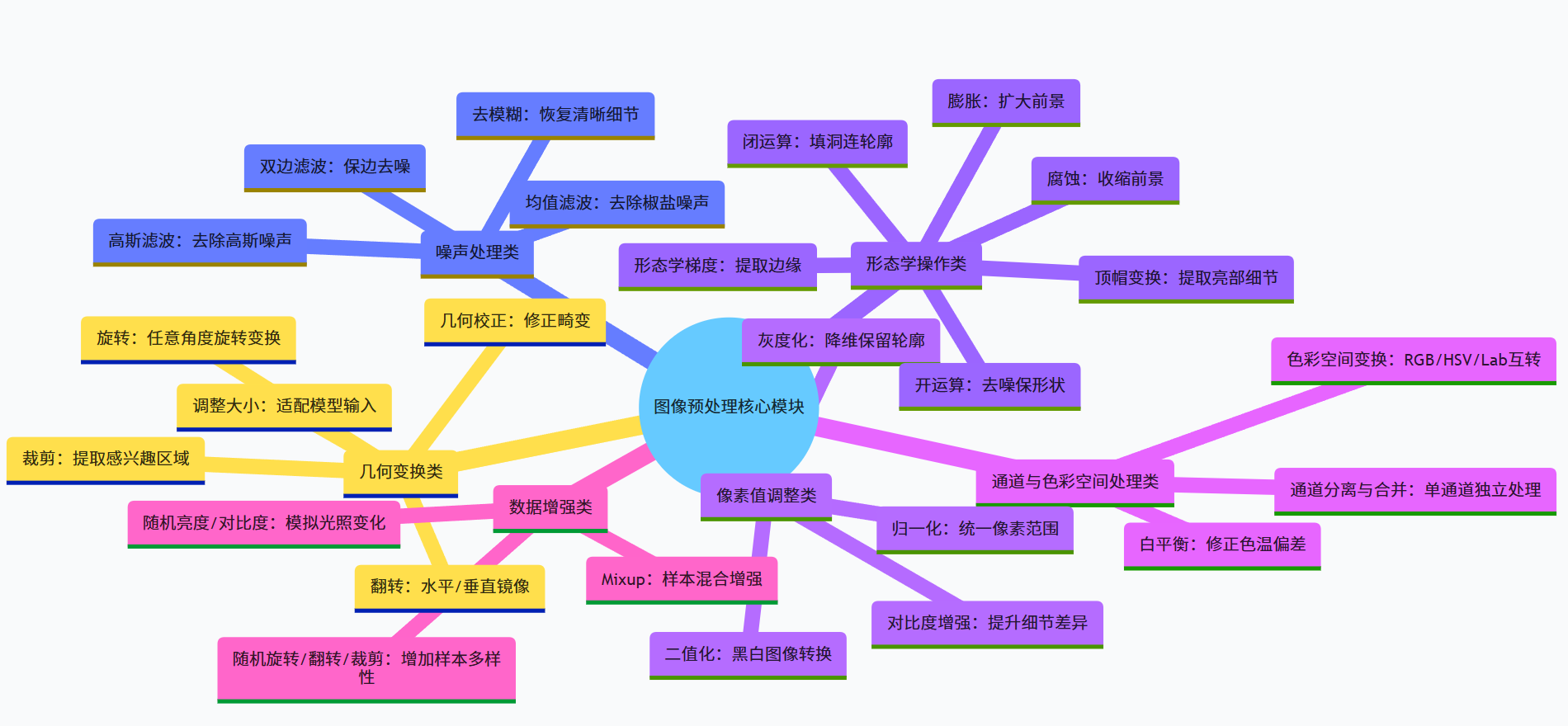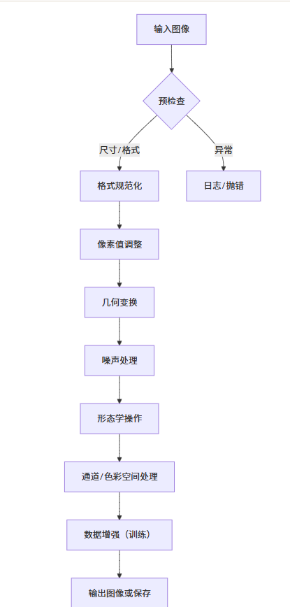 在计算机视觉领域,图像预处理是连接原始图像与高阶任务(如目标检测、图像分类、语义分割)的关键桥梁。原始图像往往存在噪声、光照不均、尺寸不一等问题,直接影响后续算法的效果。本文系统整理了六大类核心预处理操作,涵盖像素调整、几何变换、噪声处理等,所有操作均提供可直接复用的Python 实现,适合新手入门。