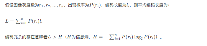 核心概念:编码冗余是指使用了过长的编码来表示图像像素(或符号),比如用 8 位二进制表示一个出现概率极高的灰度值,而理论上可以用更短的编码。