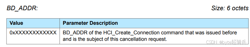.opcode = 0xXXXX, // 实际的HCI_Create_Connection_Cancel命令的opcode
