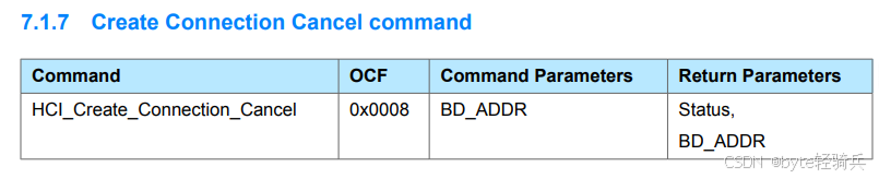 当本地设备尝试与远程设备建立连接时,如果出于某种原因需要取消这个连接创建过程(例如,用户取消了操作,或者连接超时等),可以使用 HCI_Create_Connection_Cancel 命令。该命令会通知蓝牙控制器停止尝试与指定 BD_ADDR 的设备建立连接。