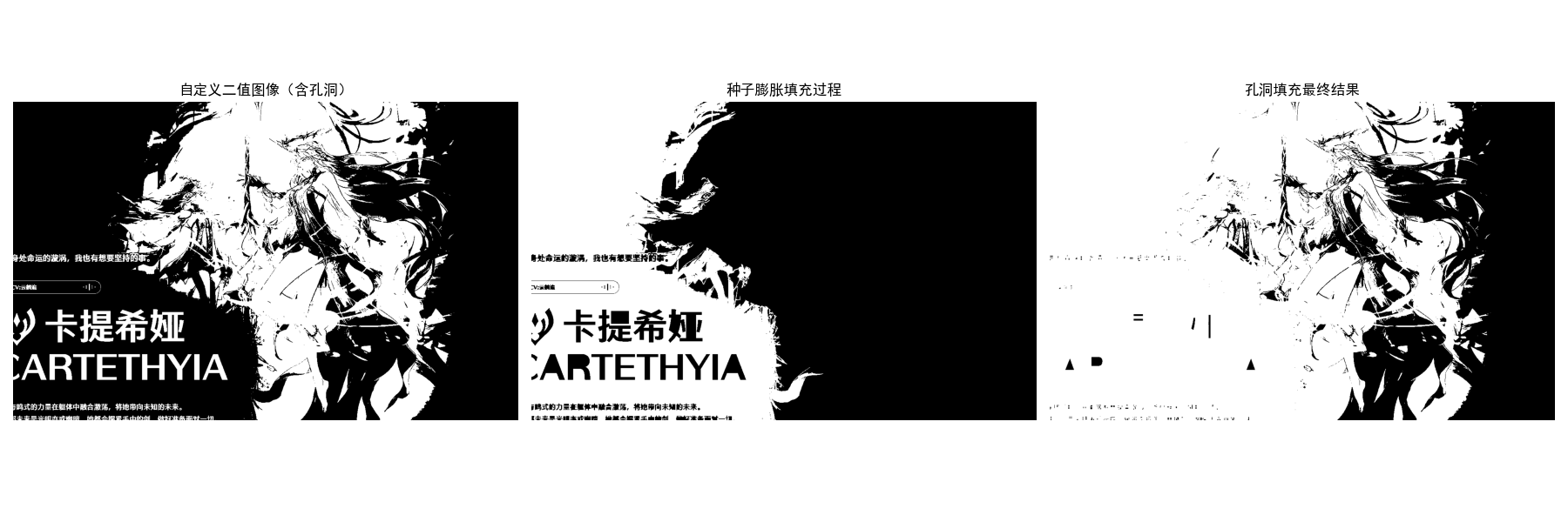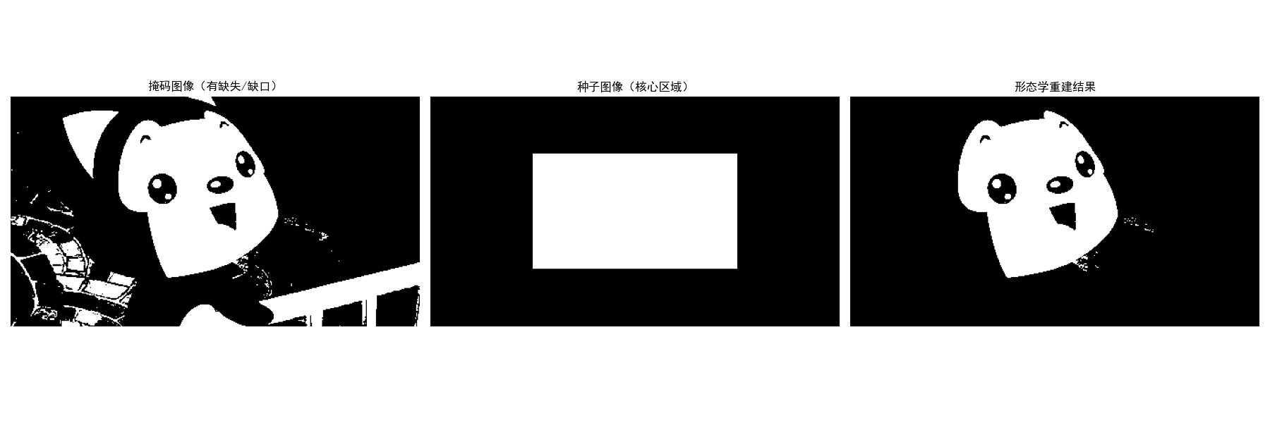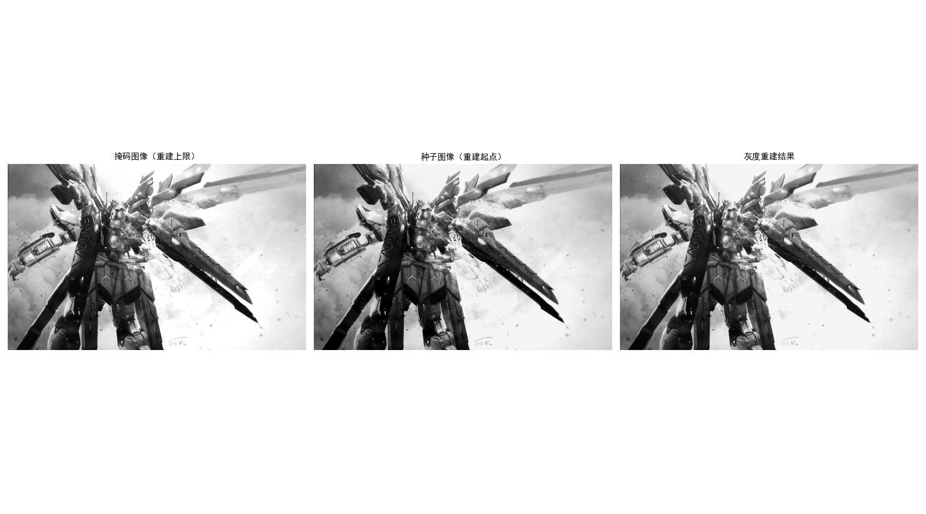 ["掩码图像(重建上限)", "种子图像(重建起点)", "灰度重建结果"],