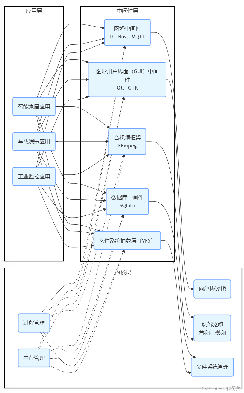 2.3. 文件系统与存储管理:数据持久化的关键 文件系统中间件 :如 FUSE(用户空间文件系统)、UBIFS/JFFS2(针对 Flash 存储的优化文件系统)。