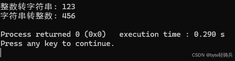 定义了两个函数:intToString 用于将整数转换为字符串,stringToInt 用于将字符串转换为整数。在函数内部,使用 stringstream 对象进行数据的写入和读取操作,实现数据类型的转换。最后,将转换结果输出到控制台。