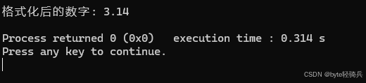 定义了一个 formatNumber 函数,用于将一个浮点数格式化为保留两位小数的字符串。在函数内部,使用 std::fixed 和 std::setprecision(2) 控制输出的格式,然后将浮点数写入 ostringstream 对象。最后,通过 str() 成员函数获取格式化后的字符串,并将其输出到控制台。