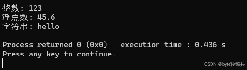 创建了一个 istringstream 对象 iss,并将字符串 "123 45.6 hello" 作为参数传递给它。然后,使用提取运算符 >> 依次从字符串中读取一个整数、一个浮点数和一个字符串,并将它们分别存储在变量 num、d 和 str 中。最后,将读取的数据输出到控制台。