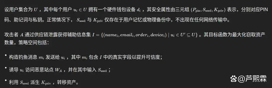 该案例揭示了一个关键问题:在Web3安全体系中,硬件钱包的“信任边界”不应仅限于设备本身,而应扩展至整个供应链数据流。当前学术界对硬件钱包安全的研究多聚焦于侧信道攻击、固件逆向、供应链植入等底层威胁,对由上游数据泄露引发的社会工程攻击缺乏系统性建模与防御机制探讨。本文旨在填补这一空白,通过技术还原、攻击路径拆解与防御方案设计,构建一个面向现实威胁场景的分析框架,为行业提供可操作的安全增强建议。