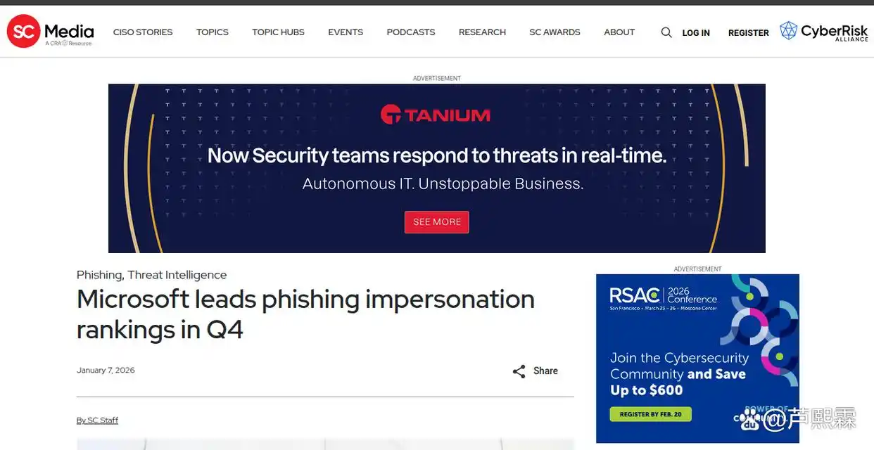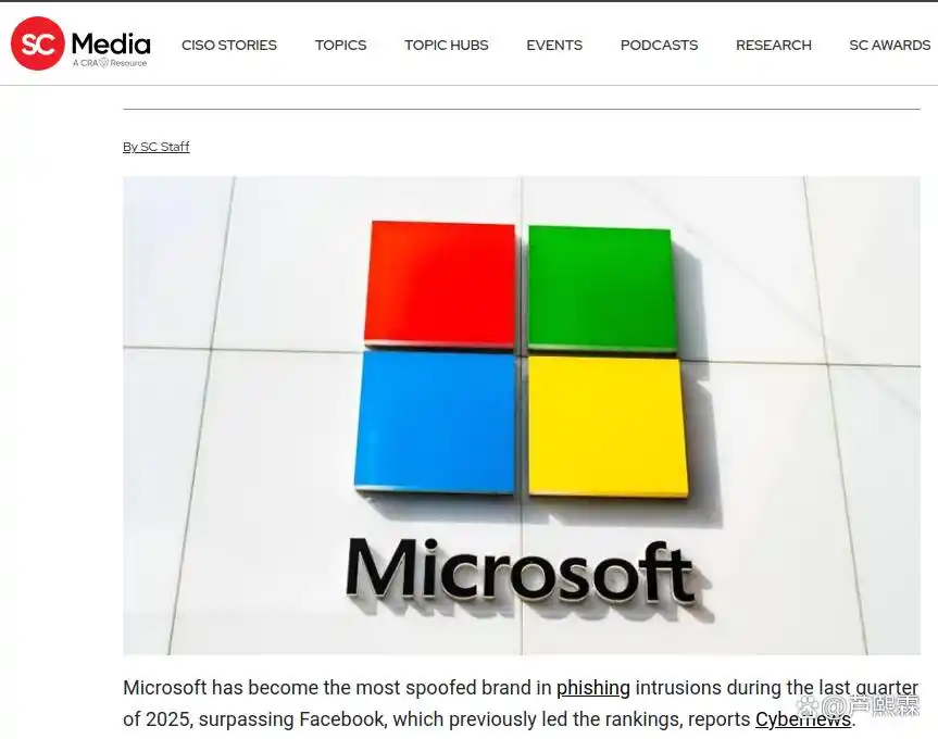 网络钓鱼作为最古老亦最有效的网络攻击手段之一,其演化始终与互联网主流服务生态紧密耦合。攻击者倾向于选择用户基数庞大、身份凭据价值高且交互频率密集的平台作为冒充对象,以最大化单次攻击的收益比。2025年第四季度,这一趋势在品牌冒充排名中得到清晰印证:Microsoft以显著优势登顶,Facebook紧随其后,而Roblox作为新兴社交游戏平台首次进入前三。这一变化不仅反映了攻击者目标选择的动态调整,也揭示了当前数字身份管理体系中的结构性脆弱点。