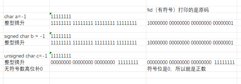但是还有一个问题,最后我要输出的结果的占位符是“%d”,打印的是十进制数字,所以我们还要进行“整型提升”,整型提升补的是符号位