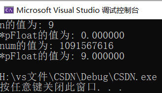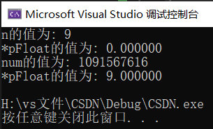 printf("*pFloat的值为: %f\n", *pFloat);