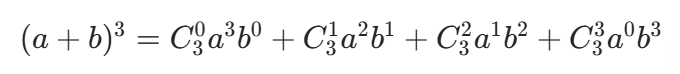 代入组合数计算:= 1×a³×1 + 3×a²×b + 3×a×b² + 1×1×b³= a³ + 3a²b + 3ab² + b³