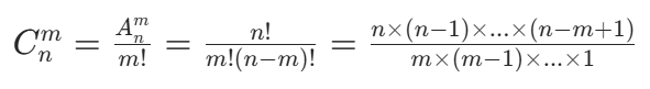 理解:组合不考虑顺序,只关注 “选了哪些元素”。比如从 1、2、3、4 中选 3 个元素,{1,2,3} 和 {3,2,1} 是同一个组合。因此,组合数是排列数除以 m!(m 个元素的全排列数,即消除顺序带来的重复计数)。