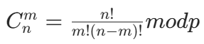 通俗理解:将 n 和 m 分别表示为 p 进制数,然后对每一位分别计算组合数,最后将结果相乘取模。