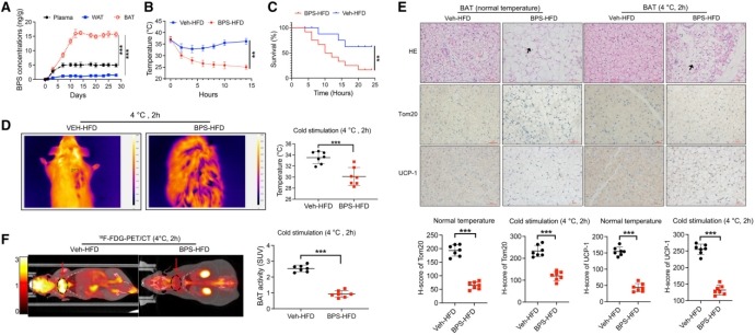四川大学华西医院的科研人员在上述文章中使用了AbMole的FCCP(Carbonyl cyanide-4-(trifluoromethoxy)phenylhydrazone,AbMole,M9051),实验人员揭示了双酚S(BPS)在肥胖发生发展中的作用机制:BPS暴露会以加剧雌性小鼠的饮食诱导肥胖,其背后机制是BPS通过诱导棕色脂肪组织(BAT)"变白"(whitening)导致产热功能障碍,并导致脂肪累积。FCCP(fluoro carbonyl cyanide phenylhydrazone,羰基氰化物-4-(三氟甲氧基)苯腙)是一种经典的线粒体解偶联剂,在该研究中发挥了关键的作用:通过FCCP刺激后的OCR变化,可以精准量化BPS暴露对棕色脂肪细胞线粒体功能的损伤程度,直接验证BPS是否通过抑制线粒体功能导致BAT变白。