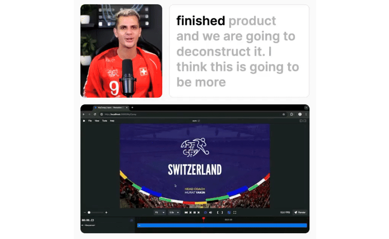Remotion 是一款基于 React 的视频编辑和渲染库。它将 React 组件与视频时间轴完美结合,允许开发者直接使用 JavaScript 和 React 来创建视频。