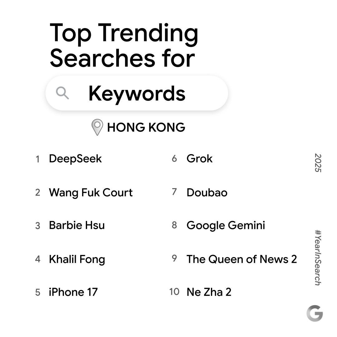 香港2025年趋势热搜榜,来源:Google