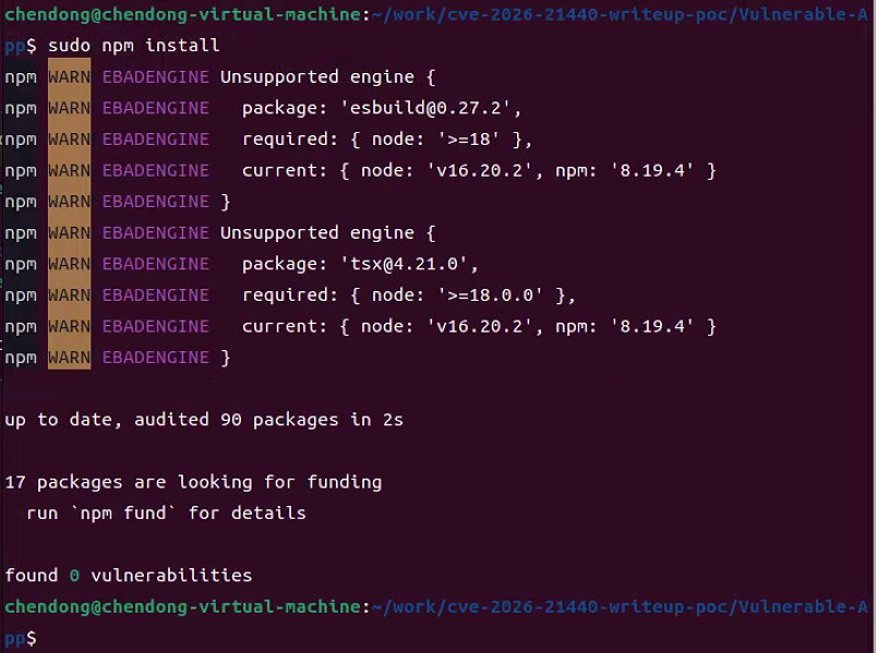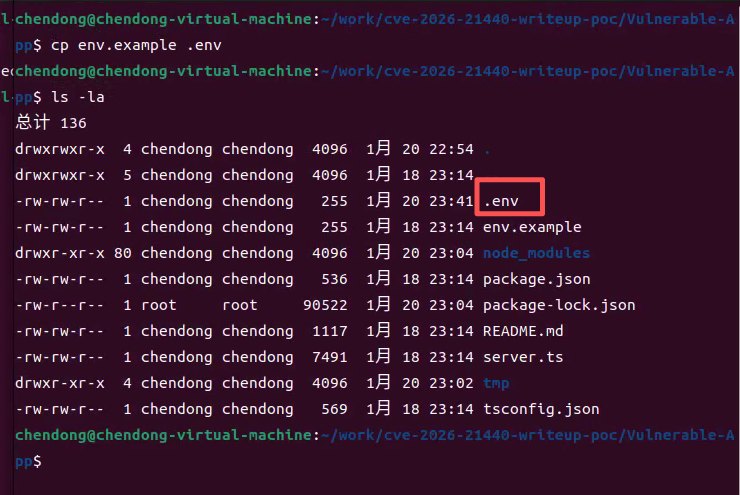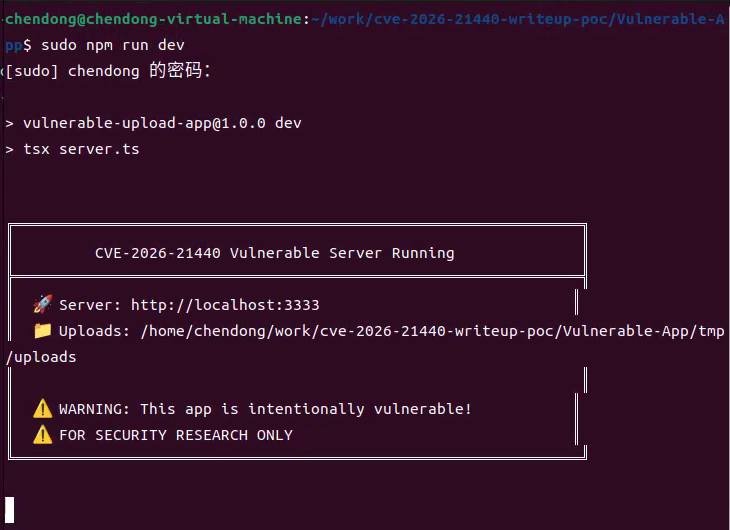 这里以cve-2026-21440-writeup-poc中的Vulnerable-App环境作为漏洞复现测试,复现的系统在ubuntu中