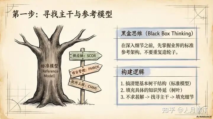 为了快速搭建起知识体系的骨架,最有效的方法是运用“黑盒思维 (Black Box Thinking)”——在深入细节之前,先去寻找并掌握业界公认的标准参考架构。这些模型是无数前人智慧的结晶,能够帮助我们避免“重复造轮子”,直接站在巨人的肩膀上竖起建筑的主要承重梁。