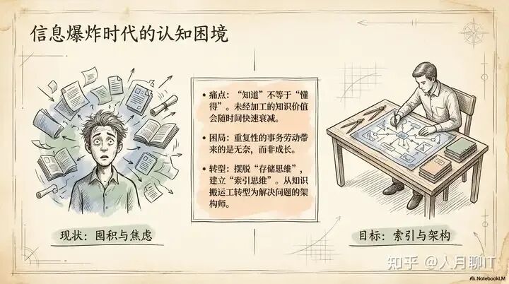 要走出这个困局,我们需要一次彻底的思维转型。我们必须摆脱被动的“存储思维”,主动建立高效的“索引思维”。这意味着,我们的角色需要从一个埋头苦干的“知识搬运工”,转型为一个能够洞察全局、规划蓝图、解决问题的“智慧架构师”。