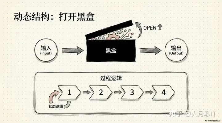 如果说静态结构关注“是什么”,那么动态结构则关注“如何运作”。它的核心是理解事物运转的流程和因果关系,即“打开黑盒”,看清内部的机制。