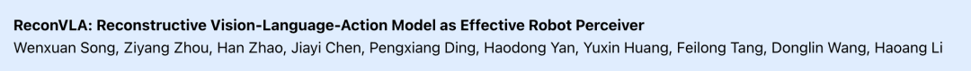 论文名: ReconVLA: Reconstructive Vision-Language-Action Model as Effective Robot Perceiver (ReconVLA:作为高效机器人感知器的重建式视觉 - 语言 - 动作模型)
