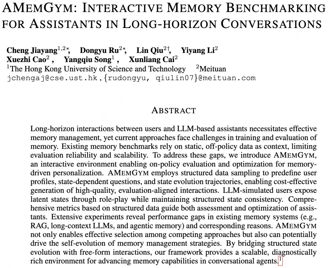 本文数据均引用自 AMemGym 论文(投稿至 ICLR 2026),发布日期 2026 年 1 月 27 日。