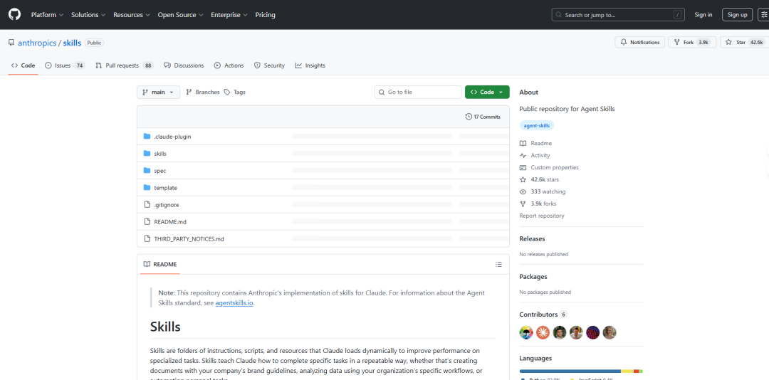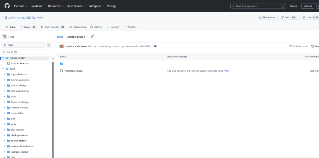 看到这儿你可能觉得,自己从零创建好麻烦啊。别急,Anthropic官方自己就开源了一个Skills仓库,里面有不少现成的、极度实用的Skills,咱们完全可以“站在巨人的肩膀上”。