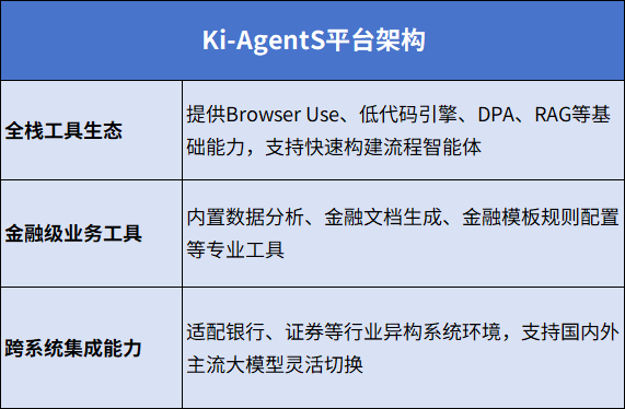 以国信证券的“场外衍生品尽调报告智能体”为例,当分析师发出指令后,Ki-AgentS能够自动登录18个内外部平台,通过“RPA+LLM”协同模式完成数据抓取、清洗与分析,5分钟生成标准化报告,将原本需要1.5小时的人工工作全部自动化。