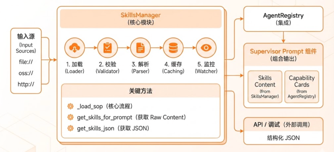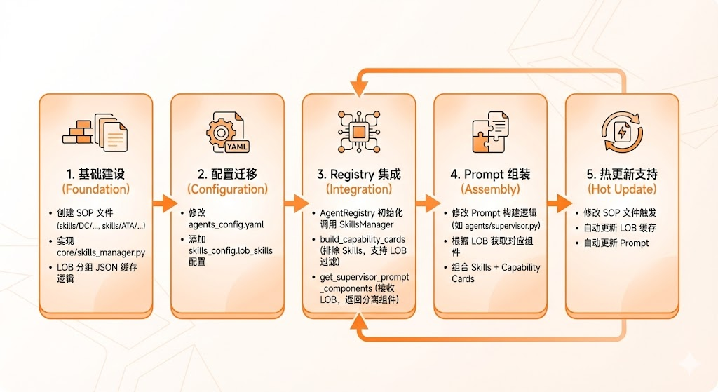 解耦(Decoupling):将业务知识(Skills)与系统配置(Config)分离,支持热更新;