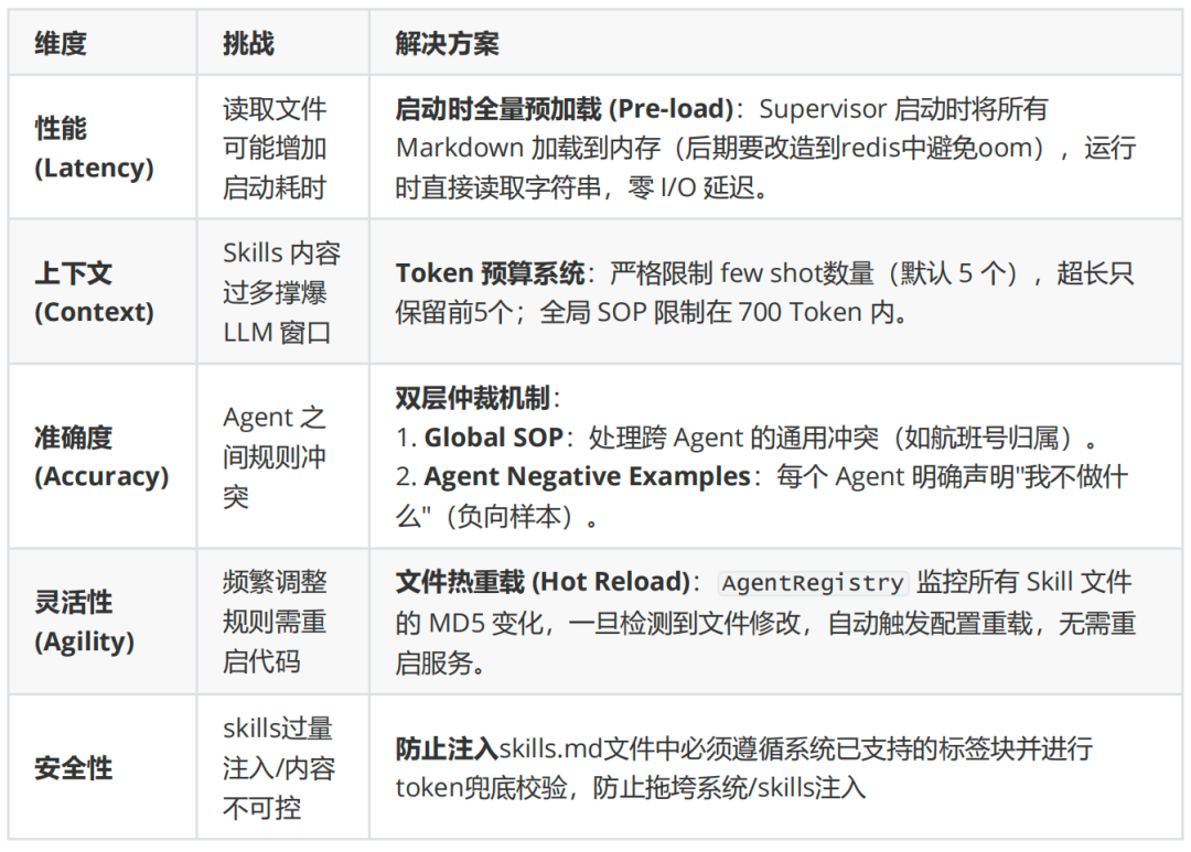 性能 (Performance):项目启动/skills更新时自动感知+刷入redis,零query请求时即时 I/O,配合Token 预算管理,避免skill导致性能和预算灾难;