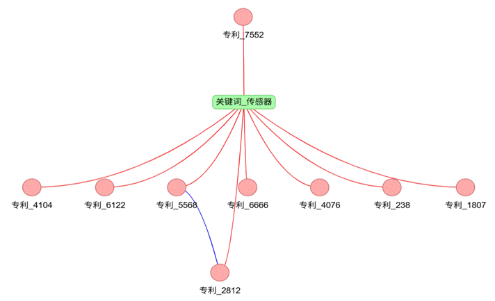从图中可清晰看到专利与关键词的包含关系、专利之间的相似关系,为GCN-GAE模型训练提供了完整的网络拓扑结构。