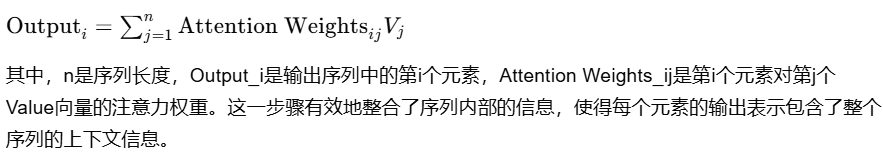 这一步骤有效地整合了序列内部的信息,使得每个元素的输出表示包含了整个序列的上下文信息。