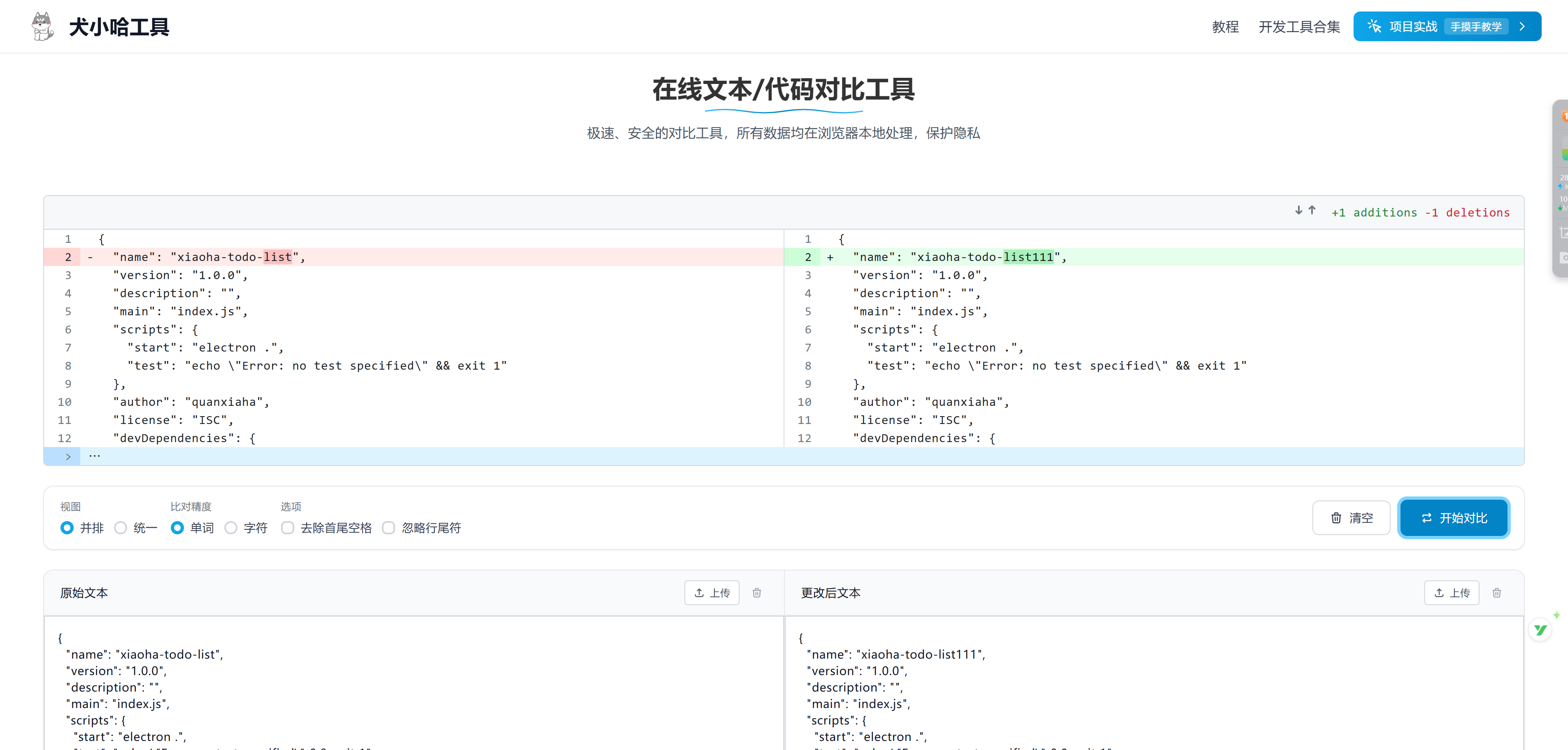 没有注册,没有广告,没有复杂设置,打开浏览器就能用,是真正的 “在线文本比对工具” 。