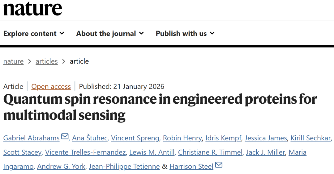Abrahams, G., Štuhec, A., Spreng, V. et al. Quantum spin resonance in engineered proteins for multimodal sensing. Nature (2026).