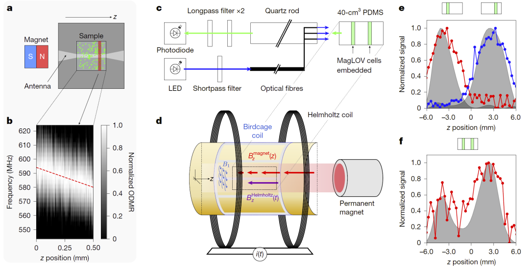 图5 :ODMR空间定位系统与实验结果。