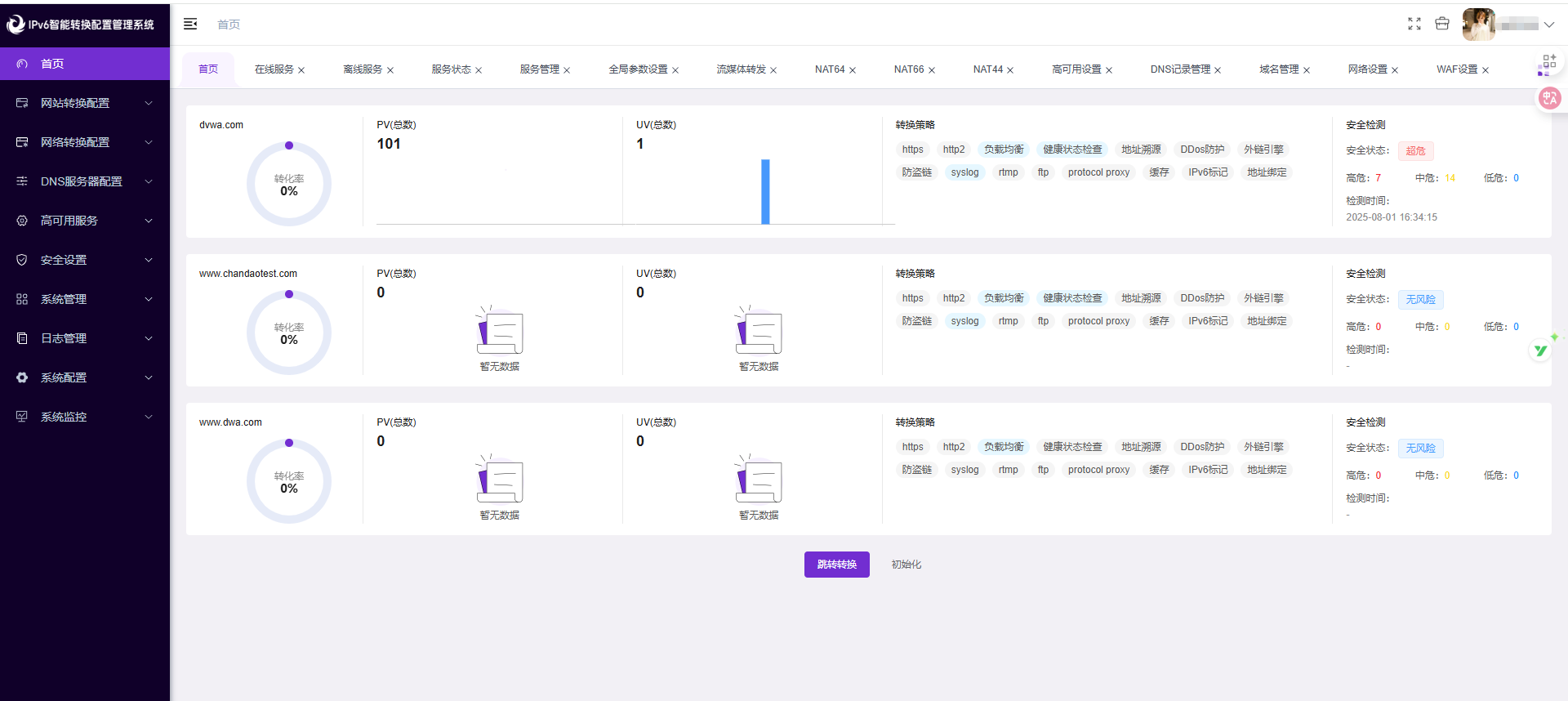 页面内容、功能在IPv4与IPv6环境下完全一致,无内容缺失、功能异常,避免虚假改造;
