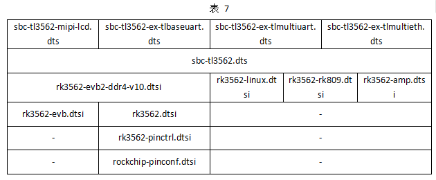 单板机使用的设备树文件存在多级的依赖关系,具体如下表所示。表中的下一级设备树文件,被上一级设备树文件所引用。