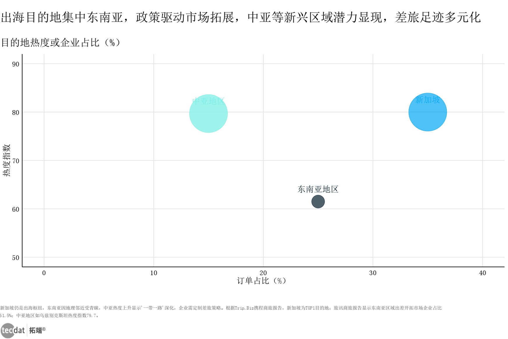 目的地热度气泡图表6数据EXCEL及图表PDF模板已分享到会员群 3秒解读:出海差旅足迹从传统热门区域向新兴市场延伸,信息不对称风险增加,AI成为“目的地导航”核心工具。 对应人群行动建议:差旅服务商可强化新兴目的地AI信息整合功能,企业可利用AI评估新兴市场差旅风险。