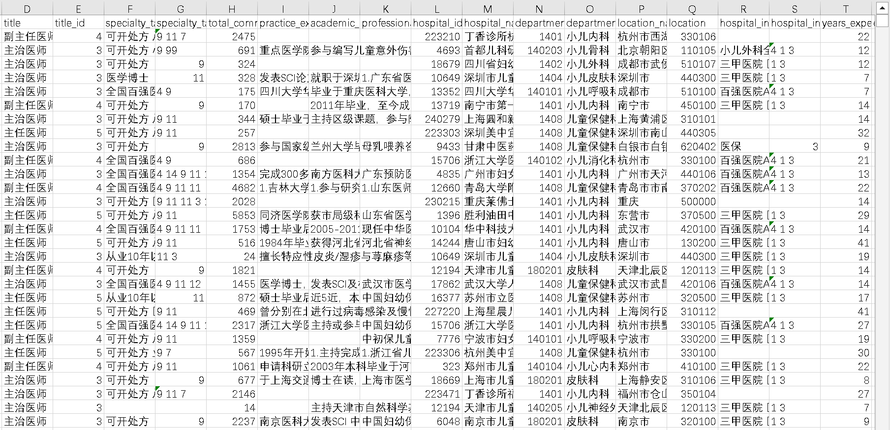 通过对核心字段的描述性统计分析,我们勾勒出丁香医生平台医生的整体画像,其主要特征如下: