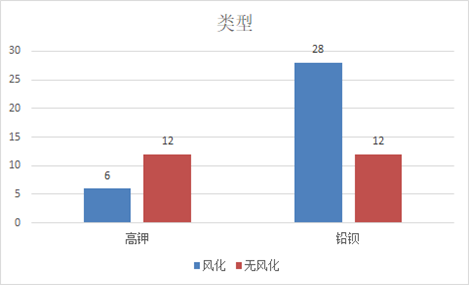 为更直观观察关联,我们用Excel绘制柱形图: 下图为类型与风化的关联柱形图,清晰呈现高钾玻璃未风化占比高、铅钡玻璃风化占比高的特征。