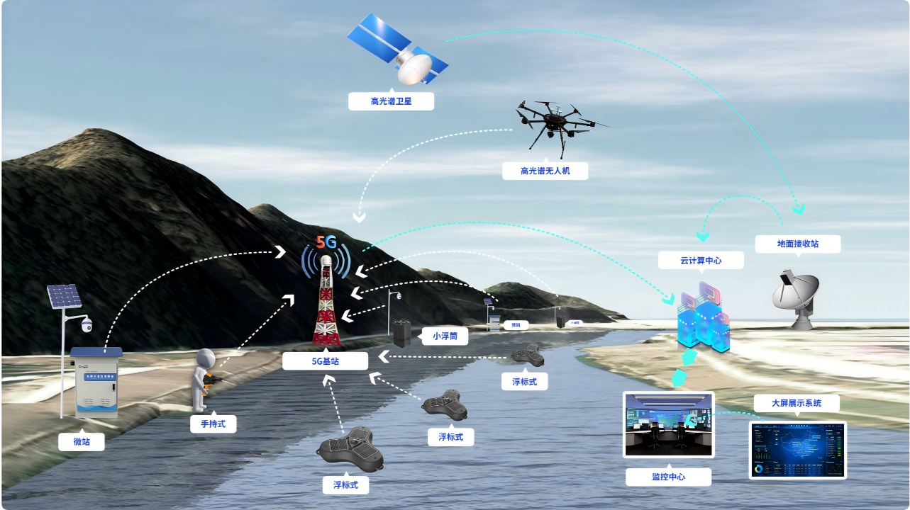 综上所述,高光谱遥感技术通过波段数量的增加获得了更高的光谱分辨率,借助空天地一体化是监测布局,构建了快捷、无污染、实时动态的水质监测模式。未来,随着光谱传感技术的进步和高性能计算的升级,高光谱水质在线监测还将朝着更智能、更稳定、更实用的方向迈进,成为水生态保护坚实的能力支撑。